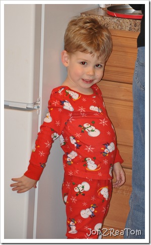 Special thanks to Aunt Ruth for the Christmas pajamas, by the way!