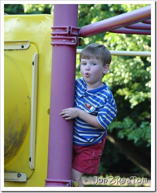 Jonathan and Reagan both wanted to climb this swirly pole, but then when they got halfway up, they didn’t know what to do and had to be helped back down!