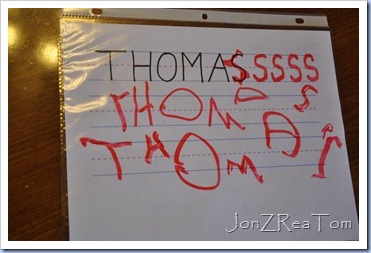 The kids are learning to write, which means they write their names a lot since those are the best words to write! Here’s a few shots of how they are doing these days: